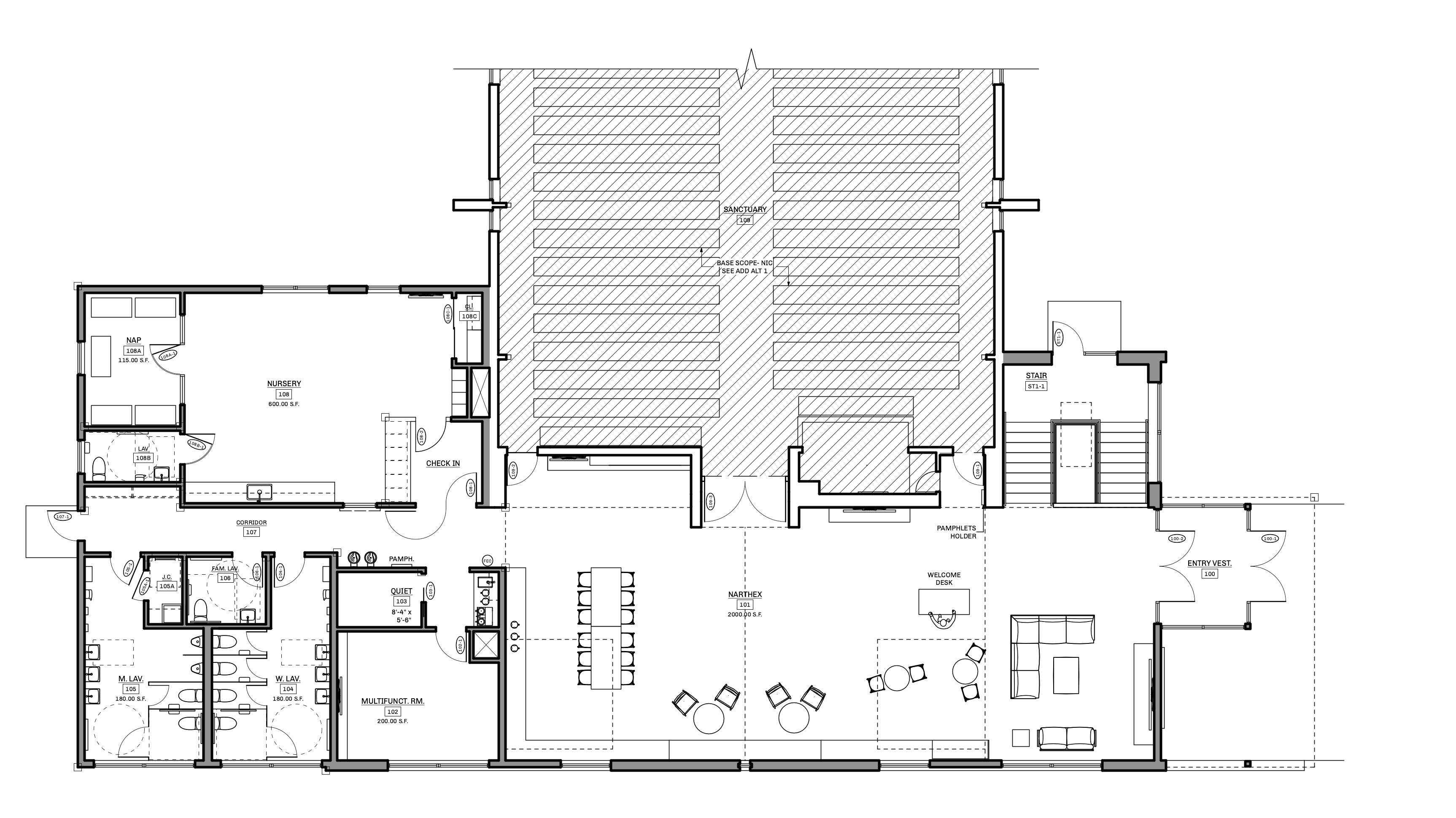 Cavalry Bible Fellowship Church realized that their current facility was not ideally suited to their goals of outreach to the Coopersburg community and growing their congregation. Our task was to see the church with new eyes - We centered the renovations and additions on improving the experience of a first time visitor, making the facility accessible to people who don’t feel comfortable in a traditional church environment, and improving teaching spaces to advance the Church’s educational ministry.