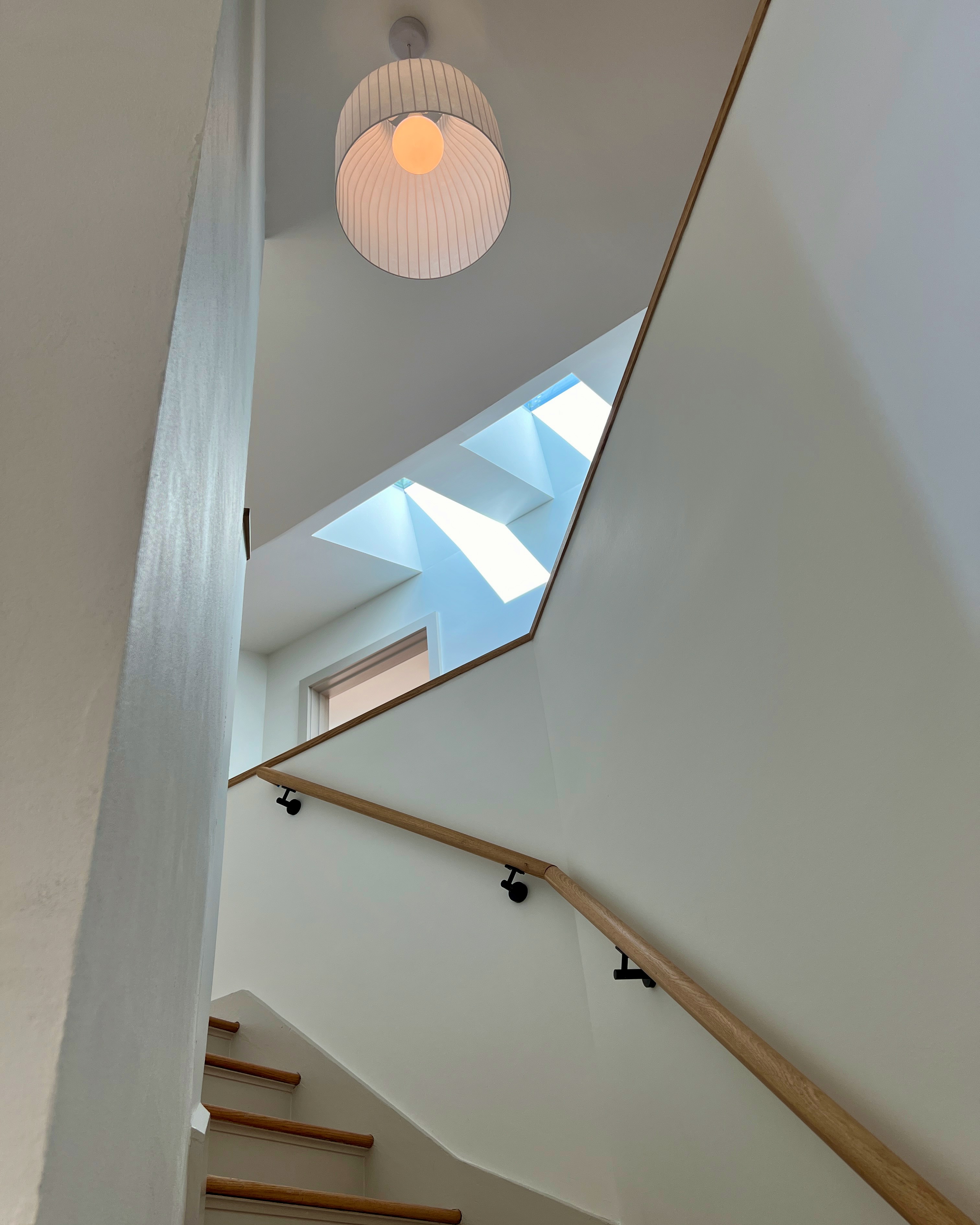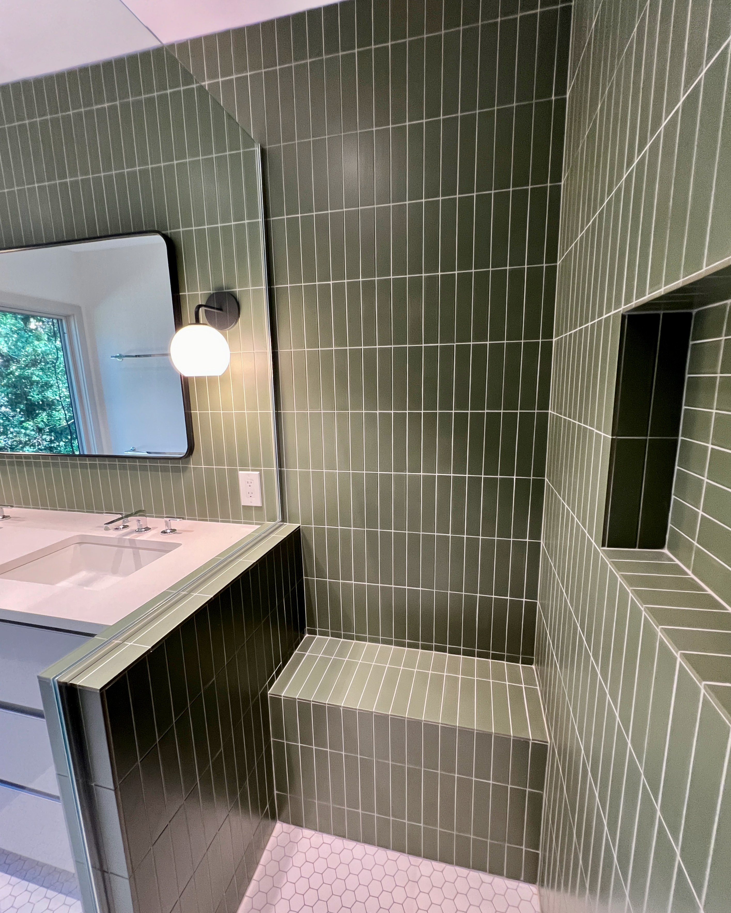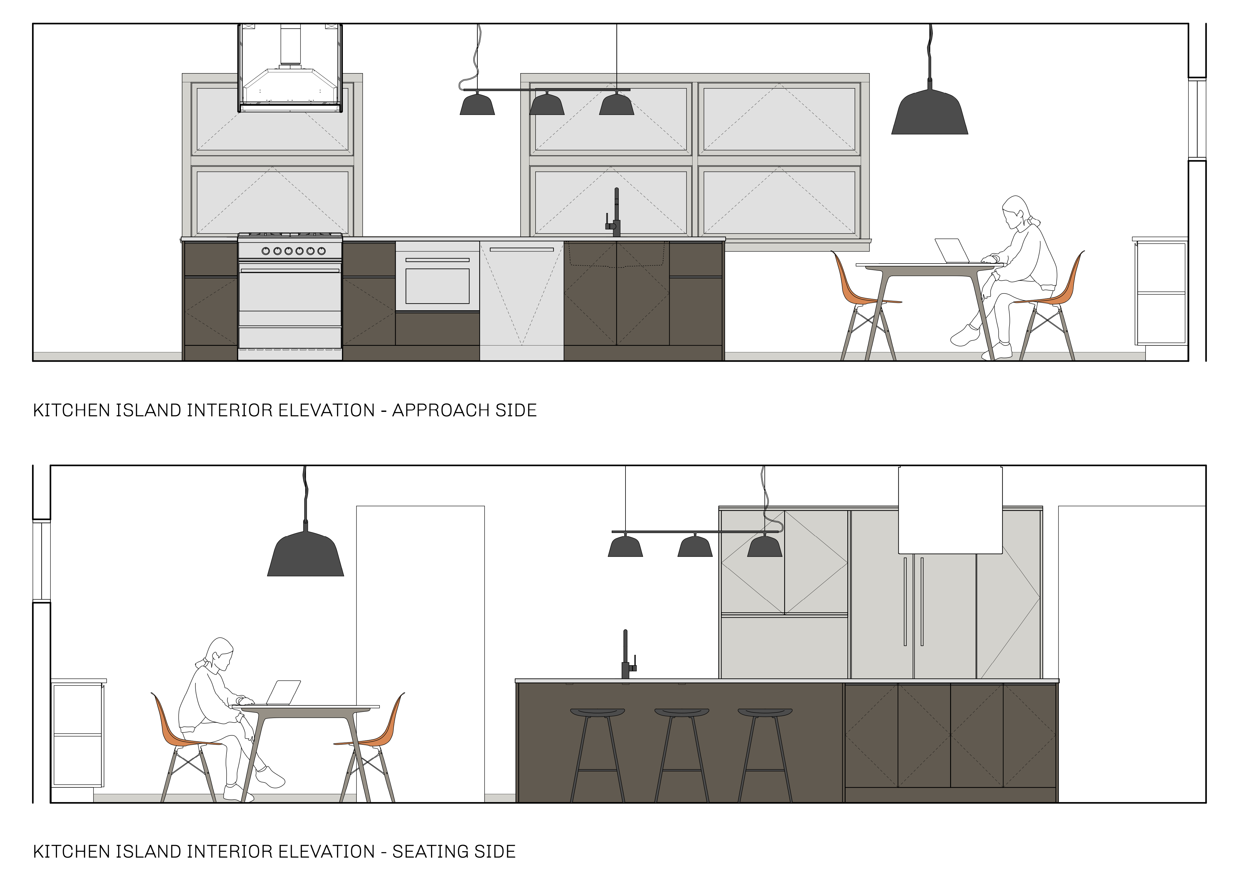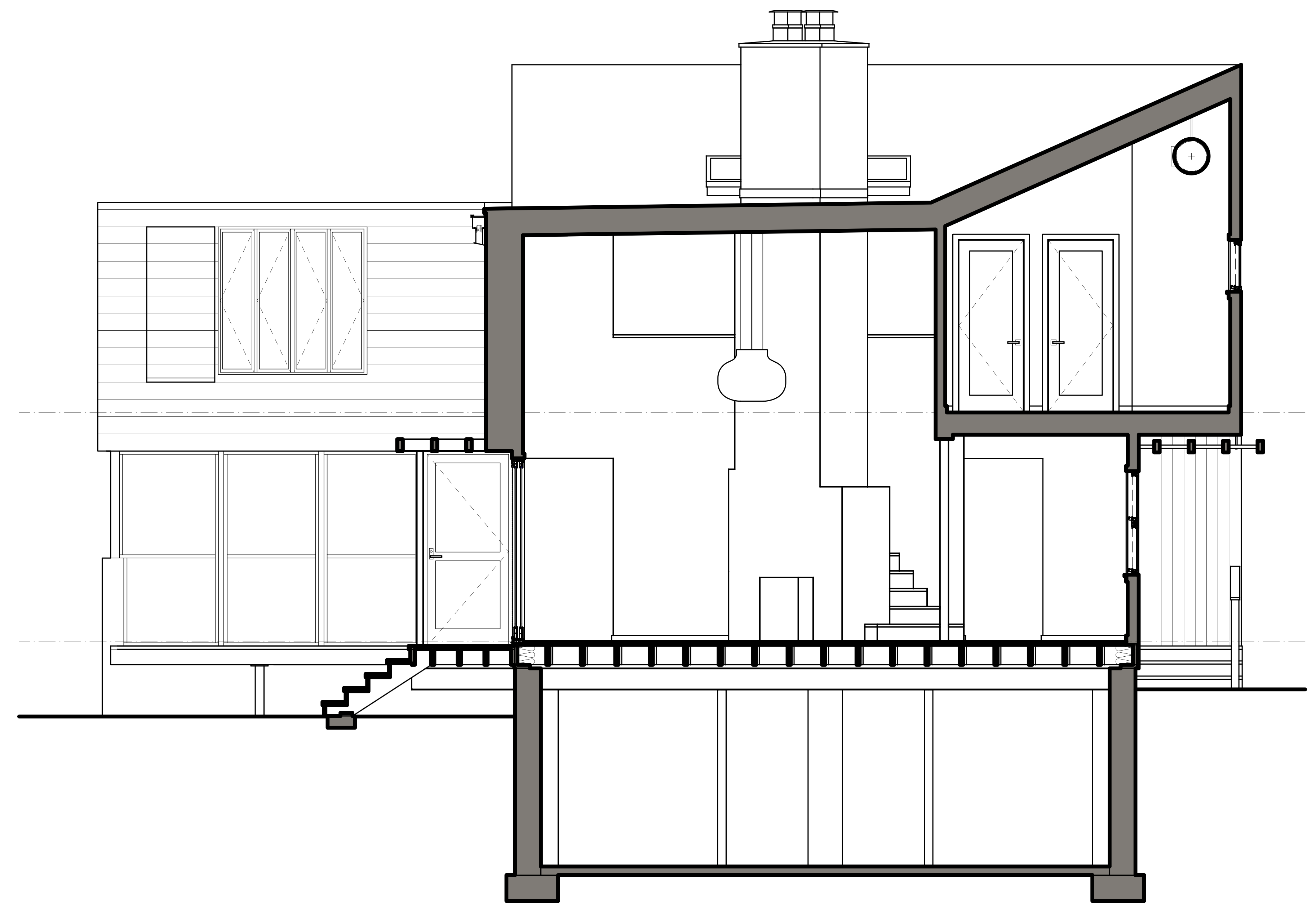 The residence, originally constructed in 1971 and designed by R. Scofidio, had been unoccupied for several years. To revitalize the property, our firm undertook a comprehensive restoration, which included "selective opening" of the first floor and the addition of a full bath and a third bedroom on the second floor to enhance its value. The front of the home presents a tall, rigid mass when viewed from the street, while our design approach prioritized openness, illumination, and integration with the surrounding environment at the rear of the structure. Entry points were accentuated with natural cedar cladding. The interior design scheme used a tranquil palette, clean and understated detailing, and playful pops of color in private areas to complement the mid-century modern aesthetic.