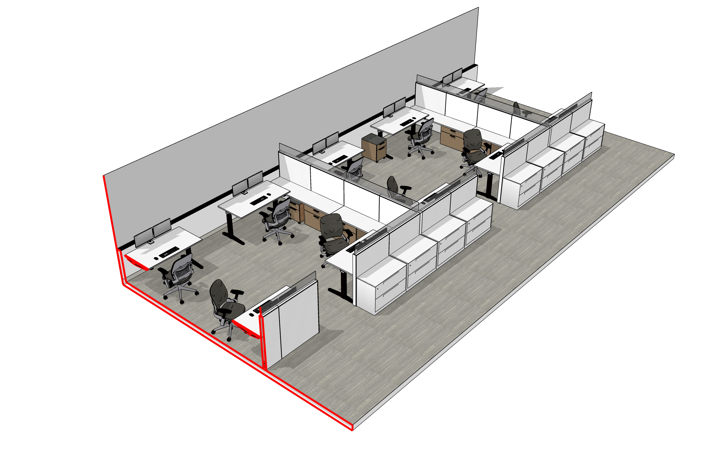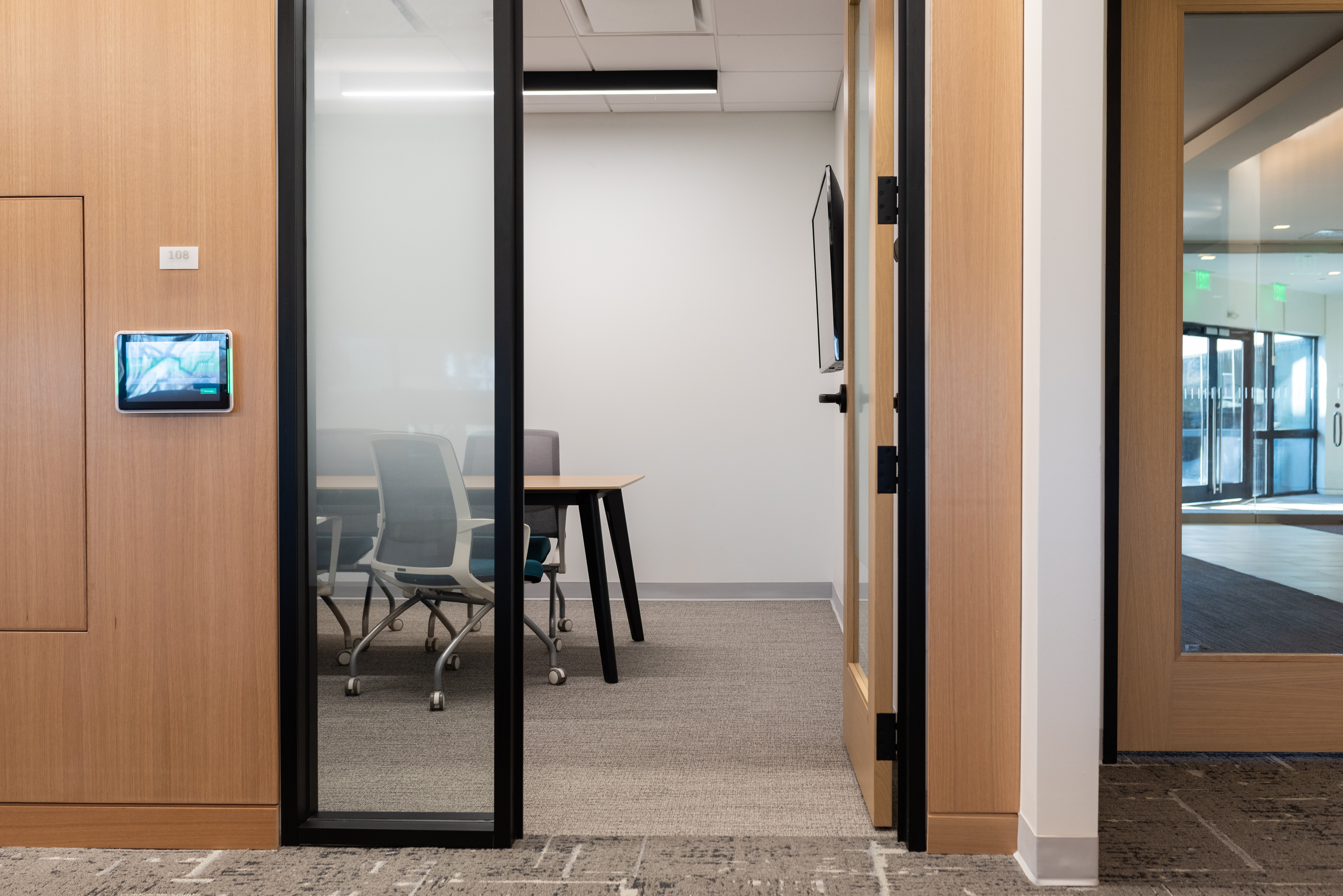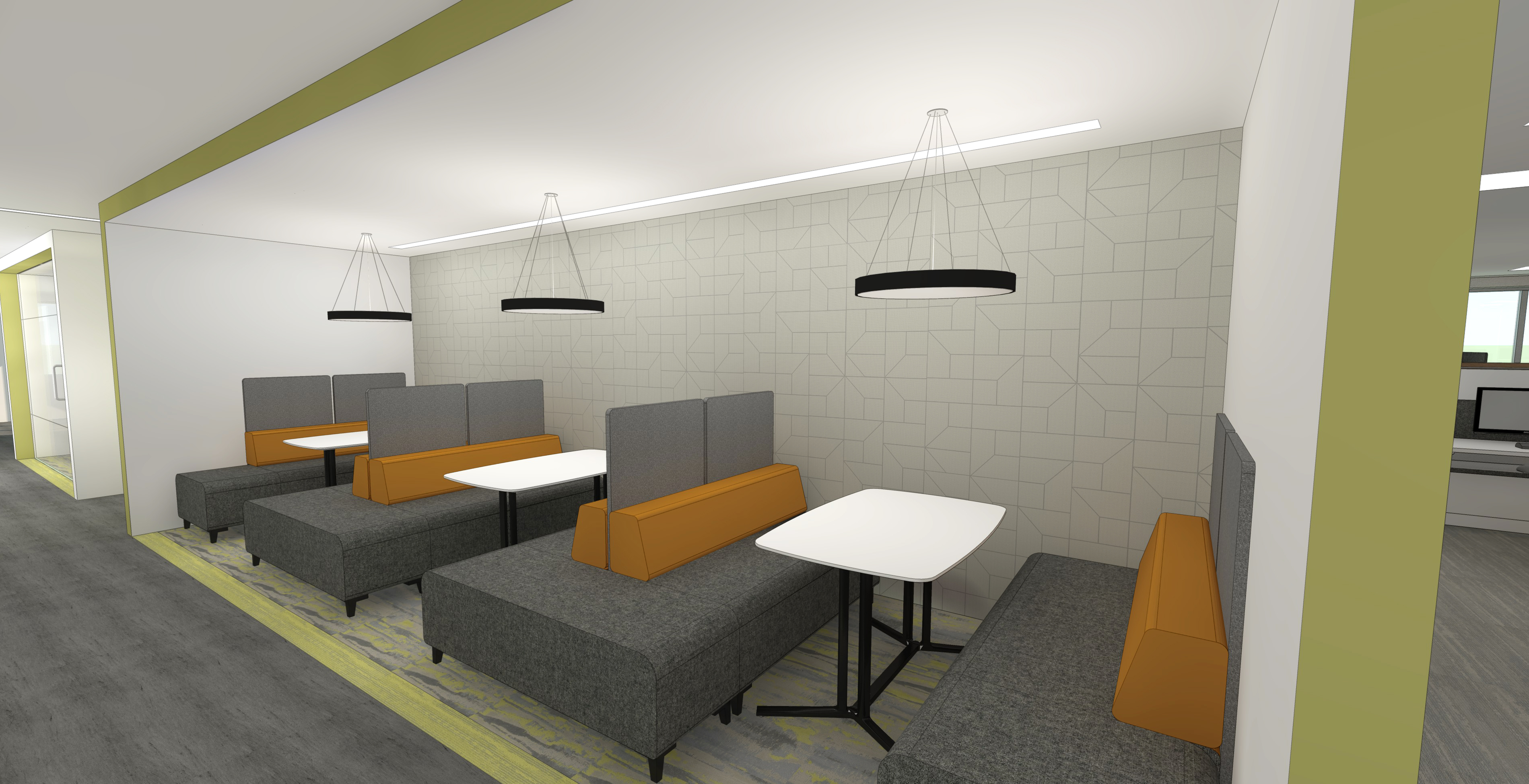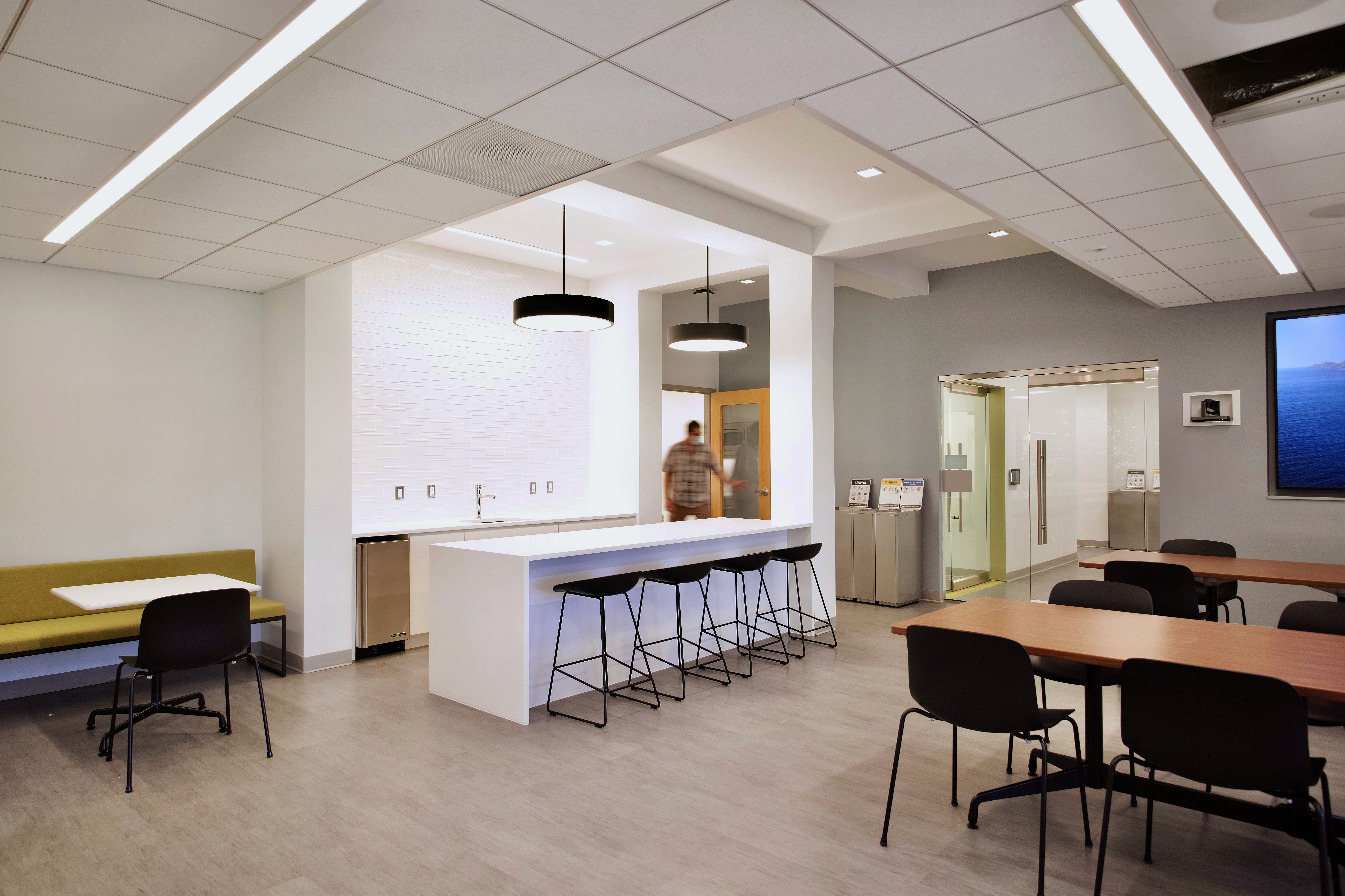 This 6,200 SF office suite was renovated for the Office of the Dean for Research. The floor plan flips workstations and shared spaces to the windows and allows daylight to filter through to the interior offices. The entry features an illuminated ceiling cove and rift sawn white oak wall panels. Infrastructure was carefully organized and felt clad pendant lights were utilized to increase acoustic comfort in the open work areas.