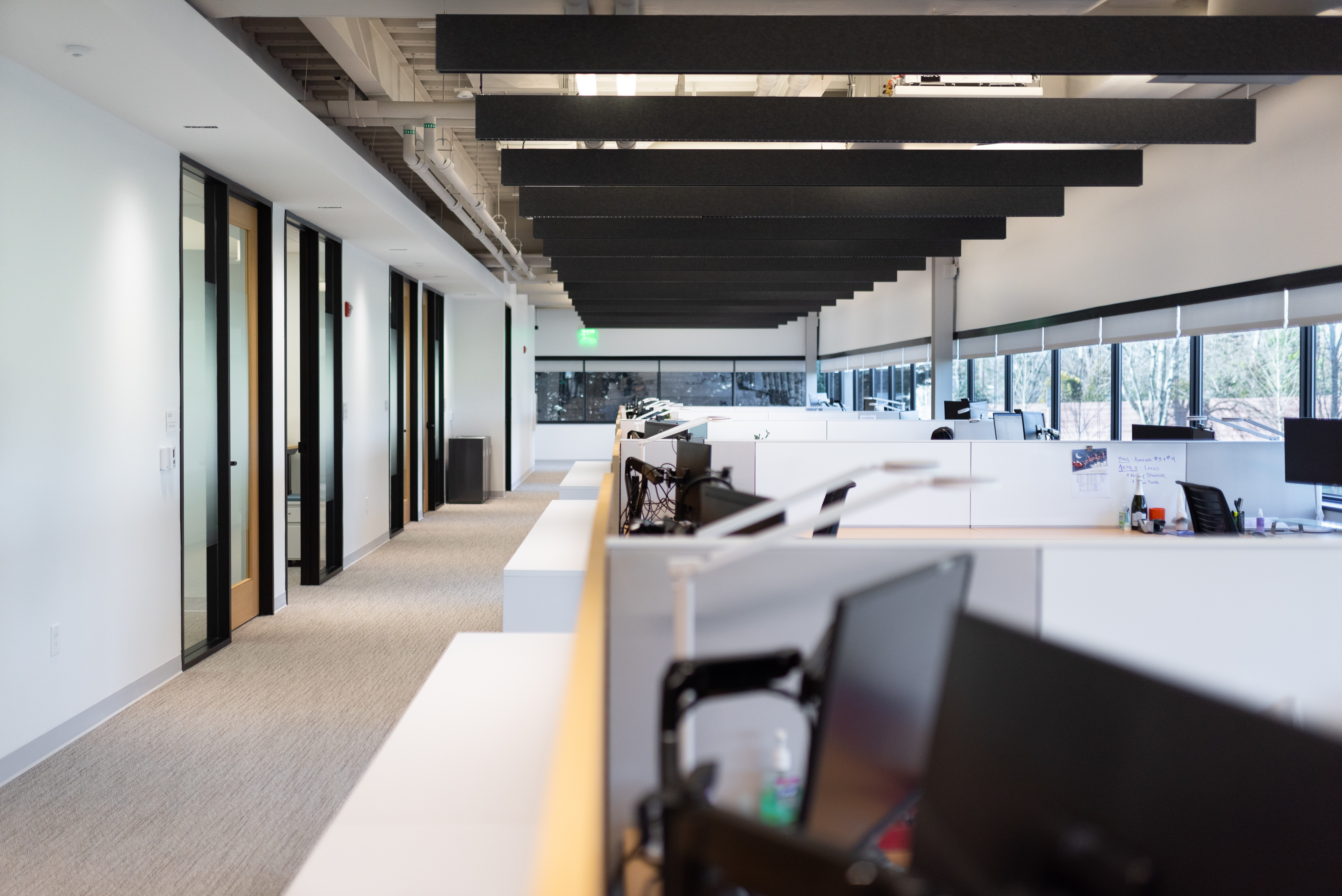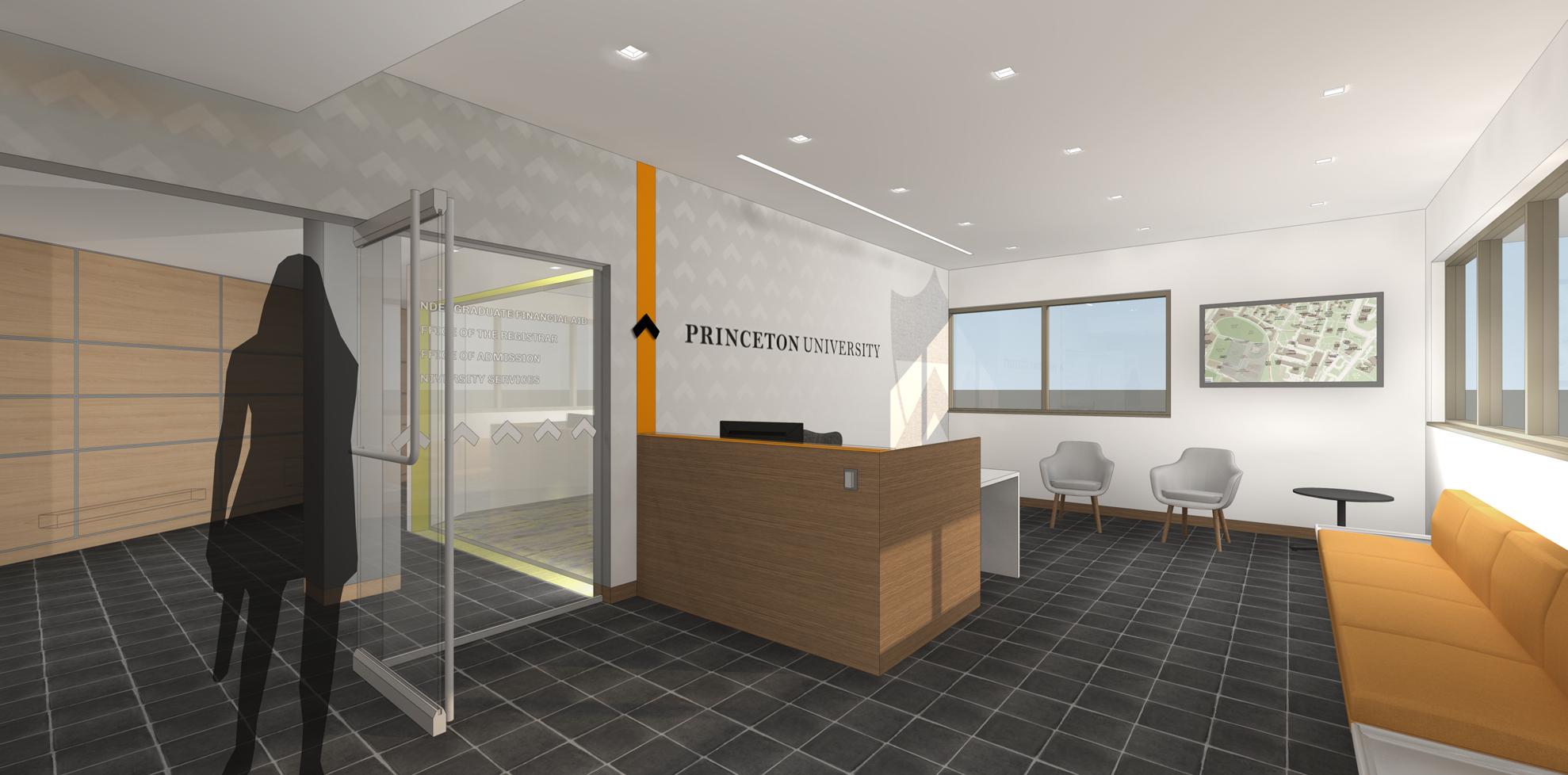The Helm building is a four-story office building at the periphery of Princeton University’s campus. The project was conceived as a modest renovation that modified existing office layouts to accommodate University Services, the Office of Admission, the Office of the Registar, and Undergraduate Financial Aid and Student Employment. The initial idea was to reuse existing furniture and to retain as many partitions as possible. As our space planning effort progressed, it became clear that this approach wouldn’t meet the needs of the departments moving to the building. Despite an accelerated project schedule, we pulled together a more ambitious design that focused on collaborative spaces and shared amenities. Throughout the evolution of the project, we worked to foster consensus among a variety of stakeholders ranging from executive project sponsors to future occupants.